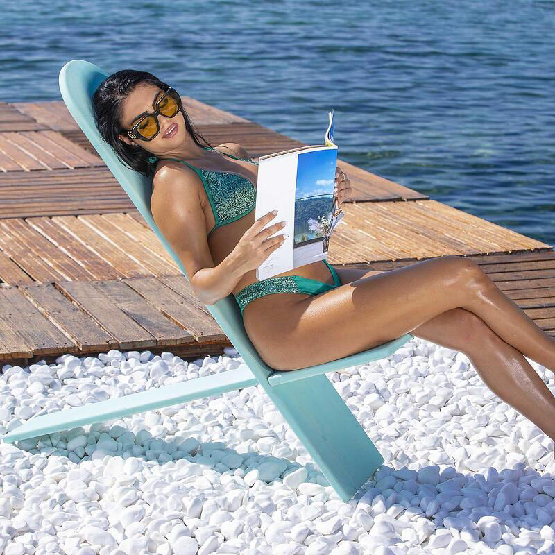 Απολαύστε στιγμές χαλάρωσης με στυλ, επιλέγοντας αυτή την εντυπωσιακή τιρκουάζ καρέκλα θαλάσσης. Ο μοντέρνος σχεδιασμός της συνδυάζει αρμονικά κομψότητα και άνεση, αποτελώντας την ιδανική επιλογή για μια ξεκούραστη ημέρα στην παραλία.